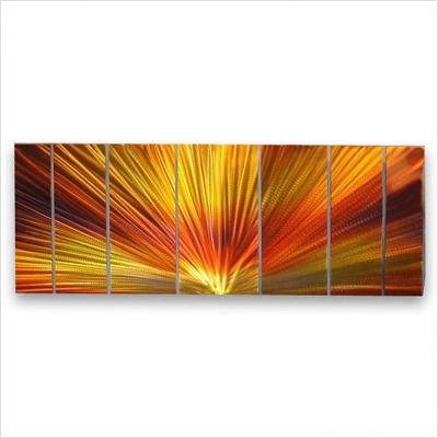 This 7 panel metal wall sculpture by artist Ash Carl will mesmerizeyou and your guests! The handsanded finish on the metal creates a unique 3 dimensional effect. As you pass by, the artwork seemingly "moves" by reflecting any light in the room. Lighting brings out amazing movement and texture in each panel! paint is applies to protect the metal and it features an amazing array of colors and detail. These pieces cannot be justified by pictures. The reflections that are hand carved into each piece can only show there best qualities in person.If you are looking for other color combinations, check out the other 80 designs of painted metal wall art by Ash Carl. Ash's artwork is collected by thousands worldwide and is MADE IN THE USA!